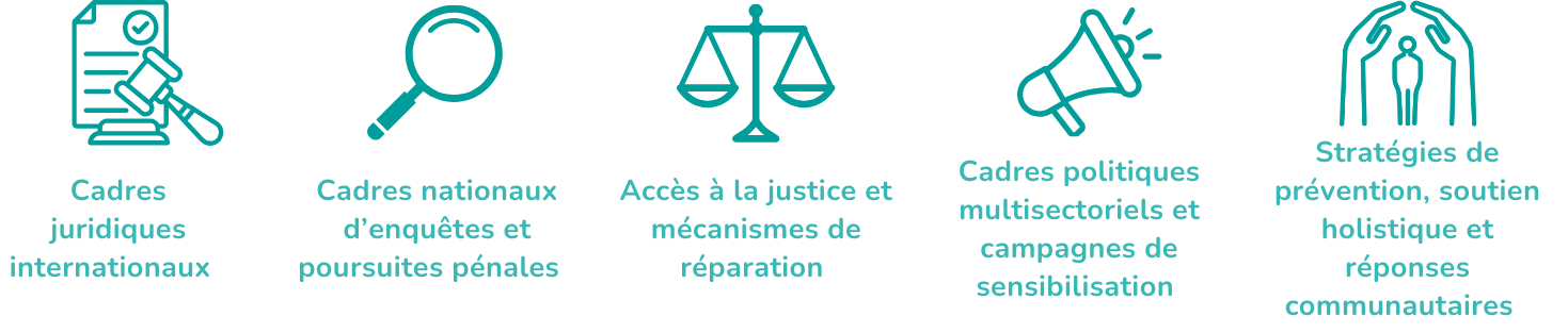 Pour faire face aux conséquences durables de ces exactions (exclusion sociale, perte de moyens de subsistance, graves problèmes de santé, traumatismes intergénérationnels) il est essentiel de penser une prise en charge globale des survivant·es à la fois sur les plans médico-psychologique, de la sécurité mais aussi en termes d’accès à l’information et la justice ainsi qu’à l’éducation et à la formation.
